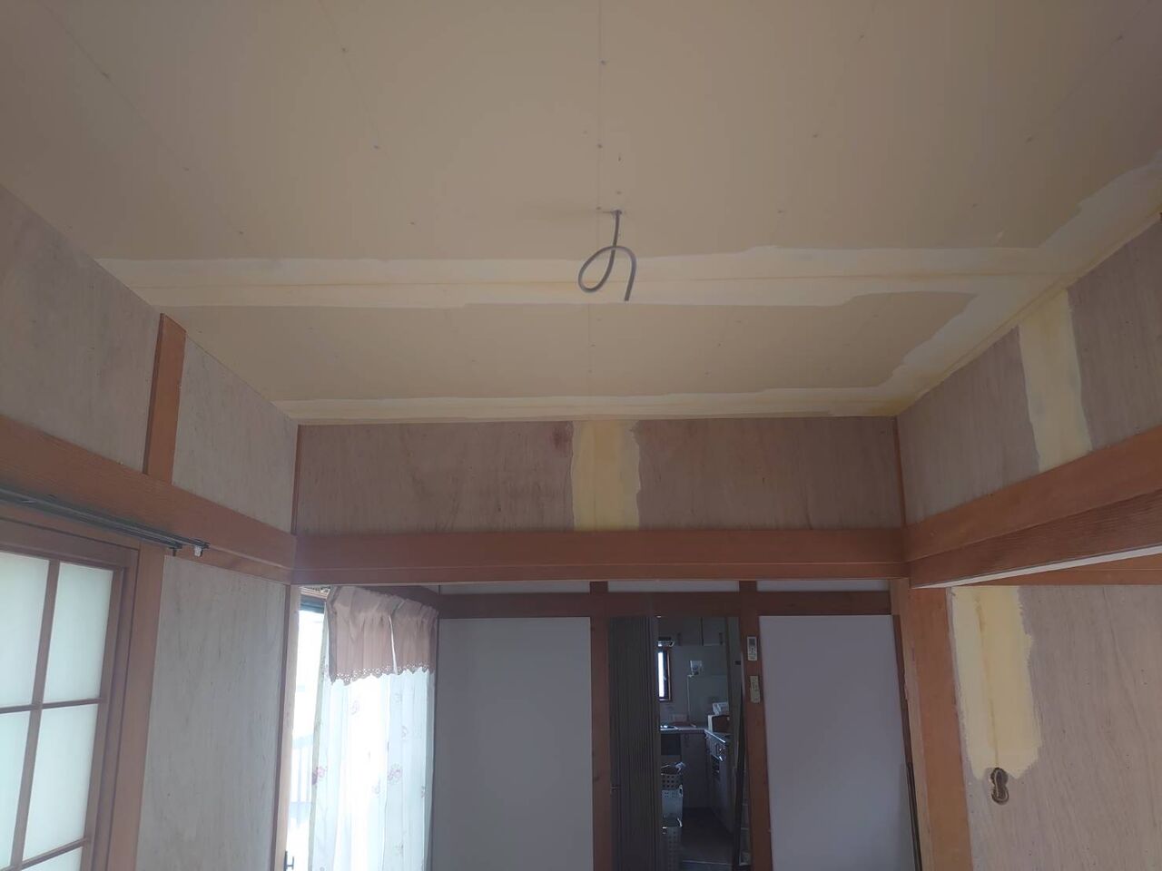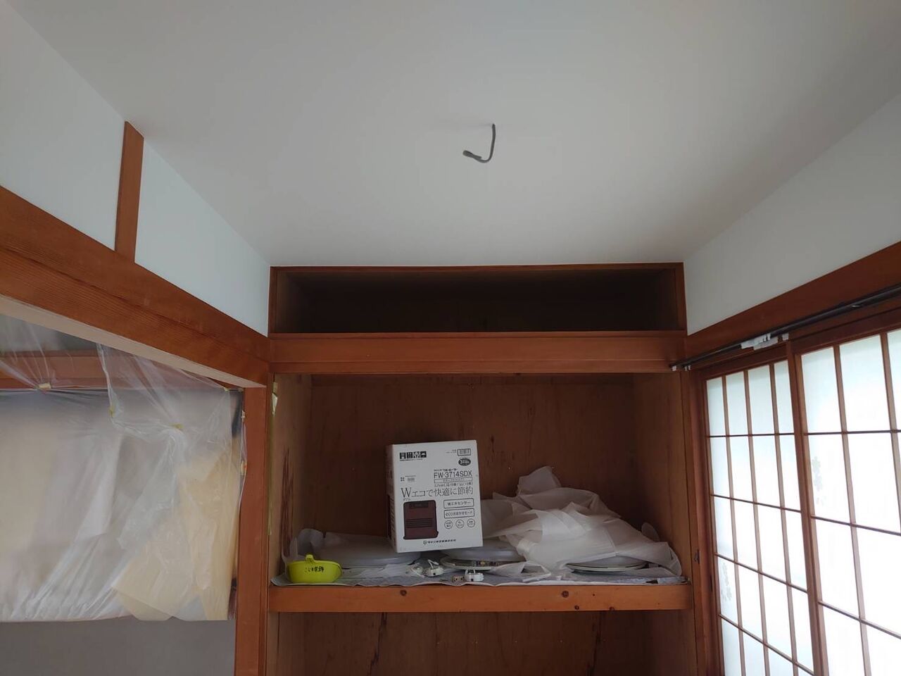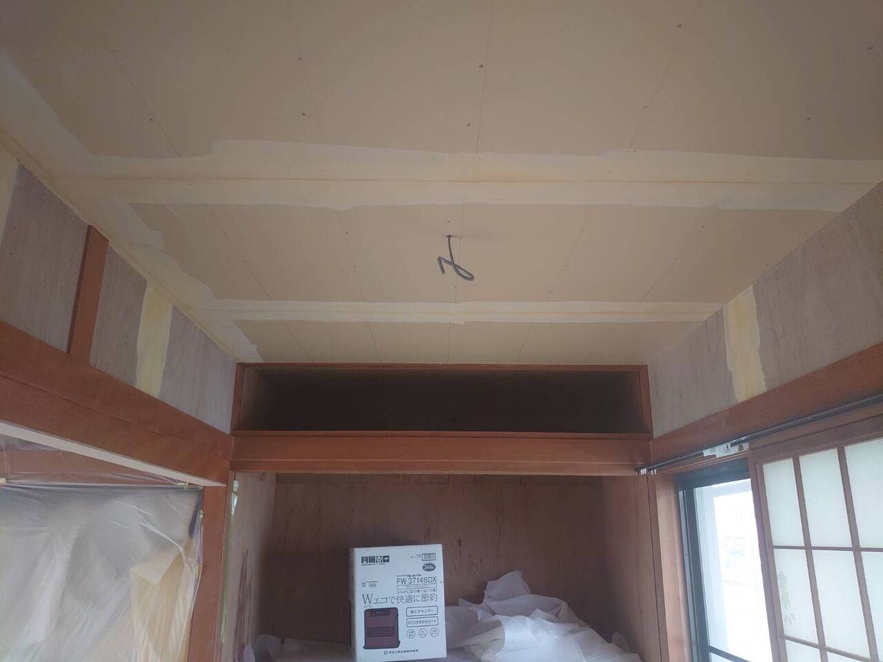 廻り縁の下にボード下地をしたので、スッキリはしましたが不思議な空間に