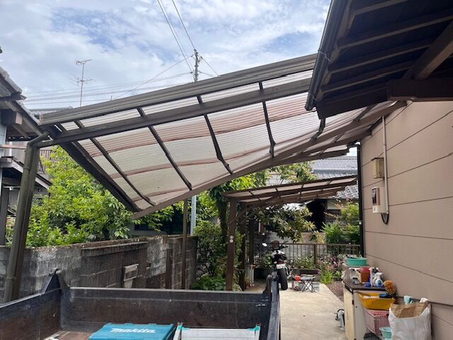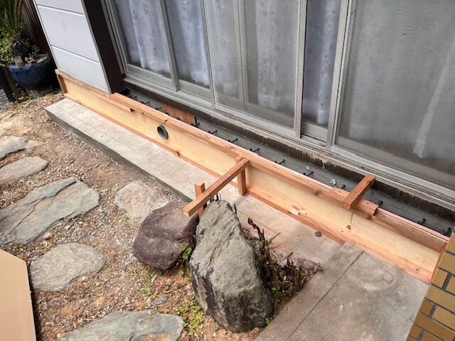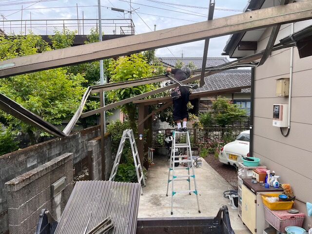 先に樋の修理を行ってからアルミテラスの再設置工事となります