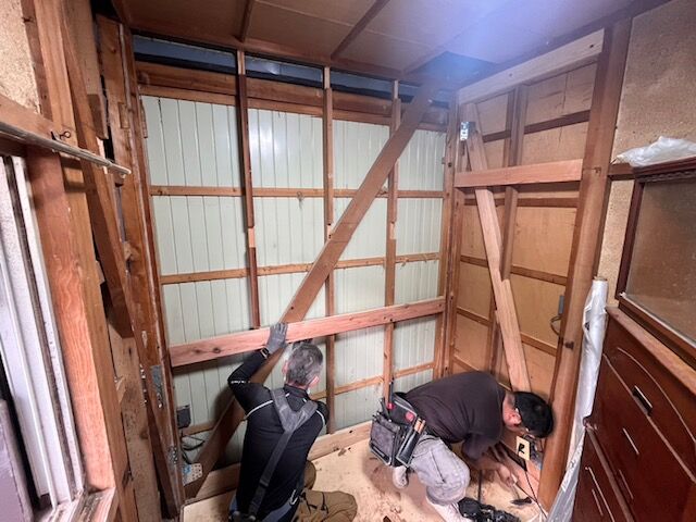 こちらの現場は昨日解体工事を行い、本日設備工事を行って準備しています