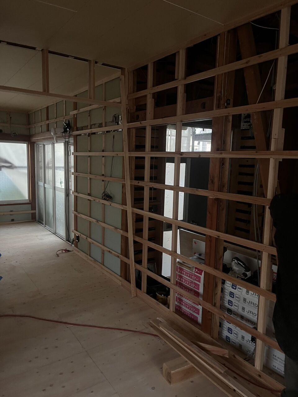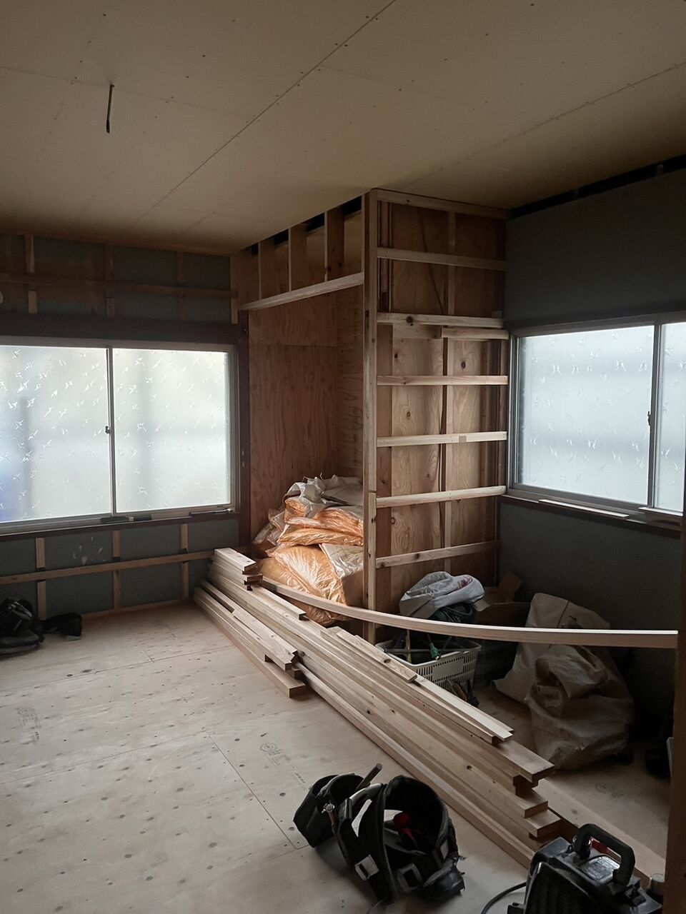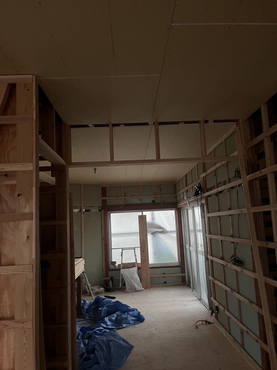 高知市内の現場で天井ボード貼りと、壁下地などを行いました