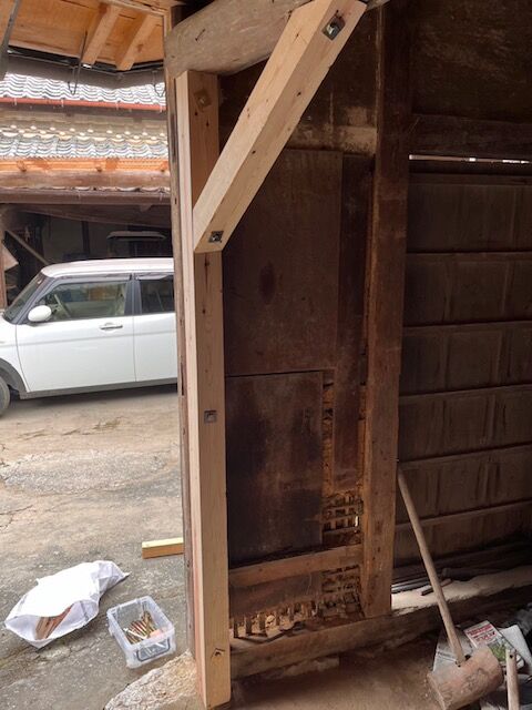 柱が大分ズレていましたが、元の位置に戻して補強しました