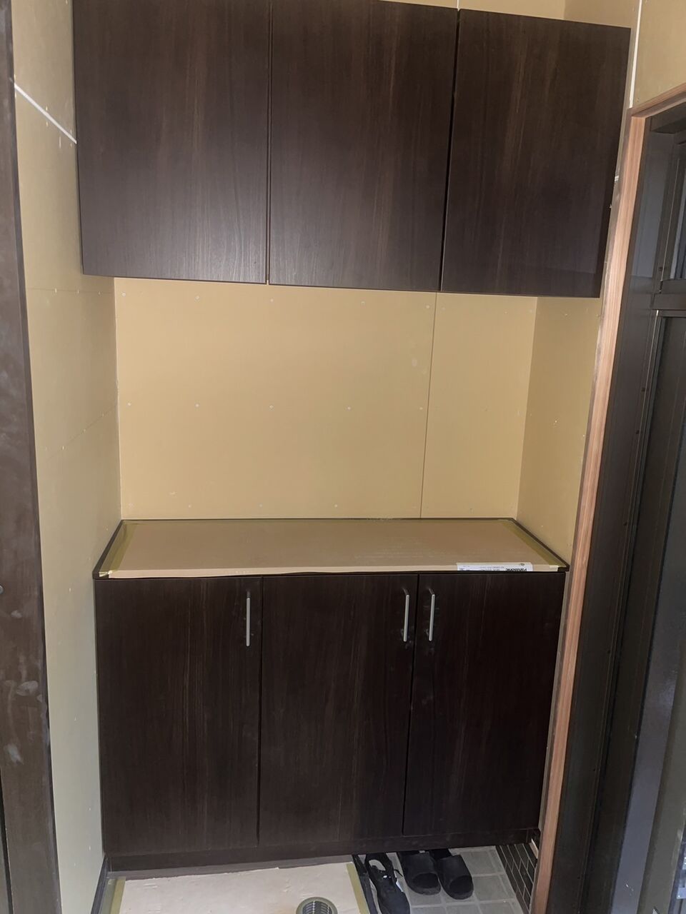 洗面所のクロスは終わったみたいですが、床と巾木がまだの様です