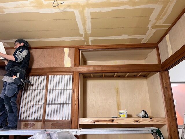 こぐま君は、今日も明日もパテやってクロス貼ってを行います