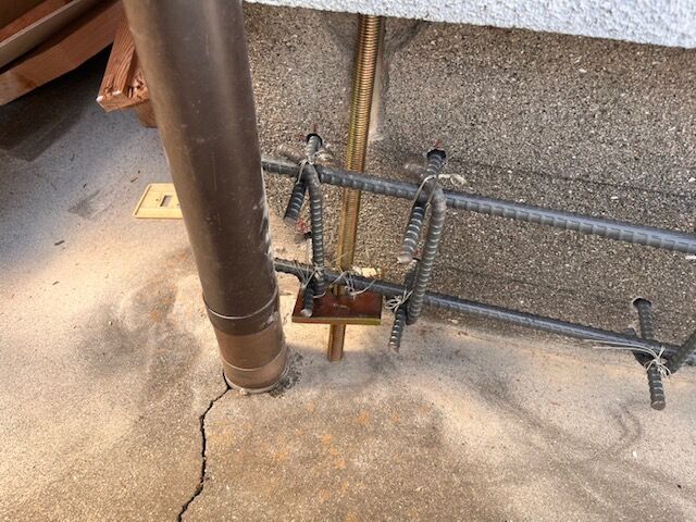 写真の様にホールダウンのボルトと鉄筋をつないでからコンクリートで巻き