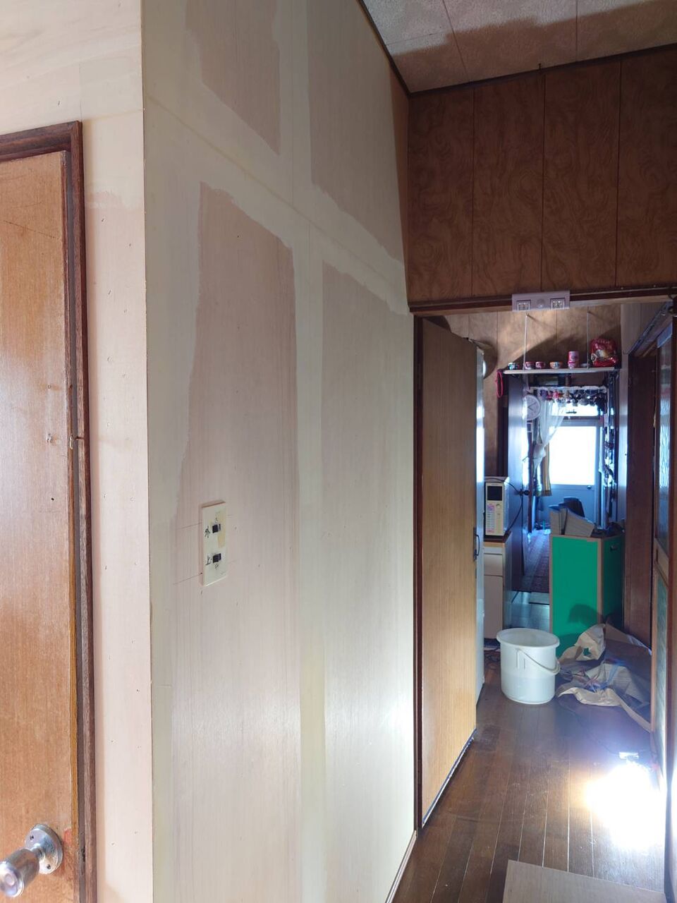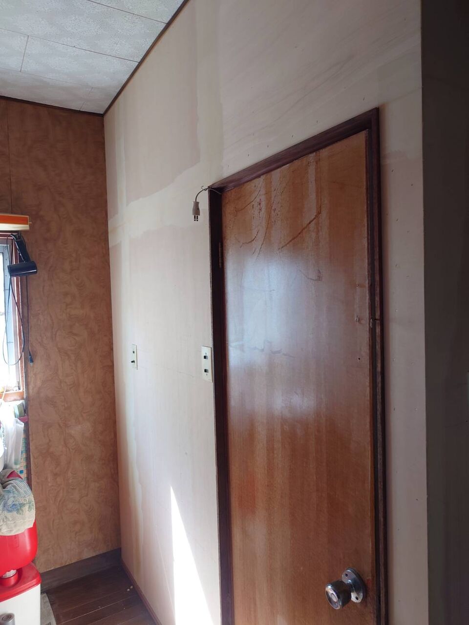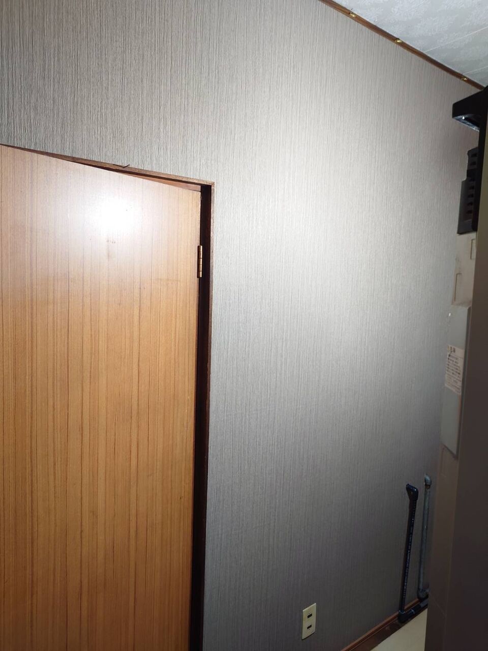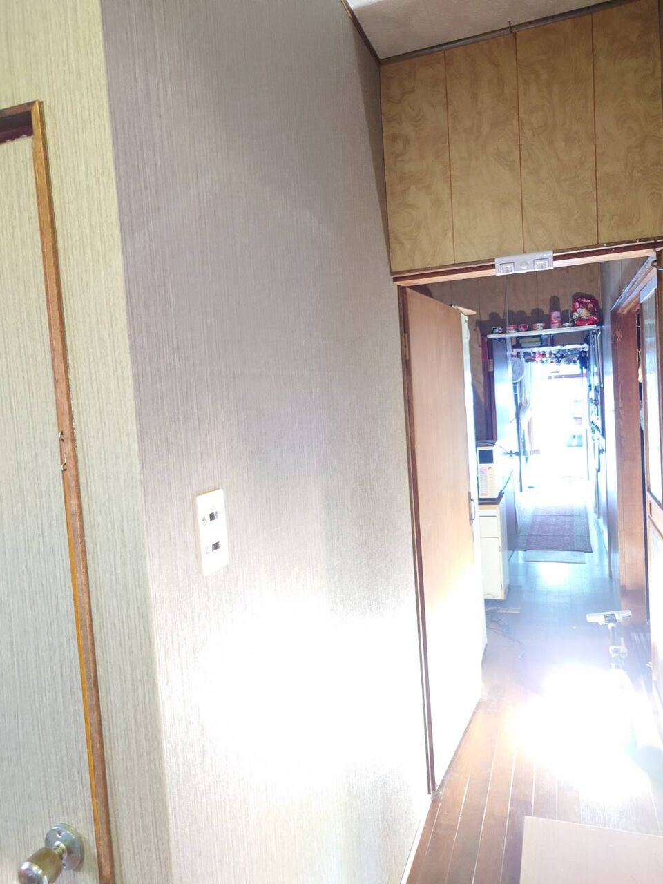 玄関側の壁の様子ですクロスを貼って明るくなりました