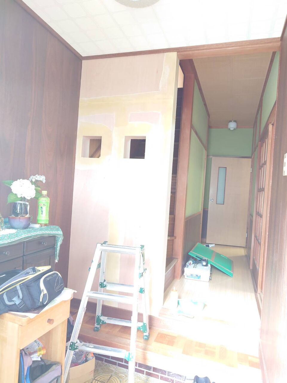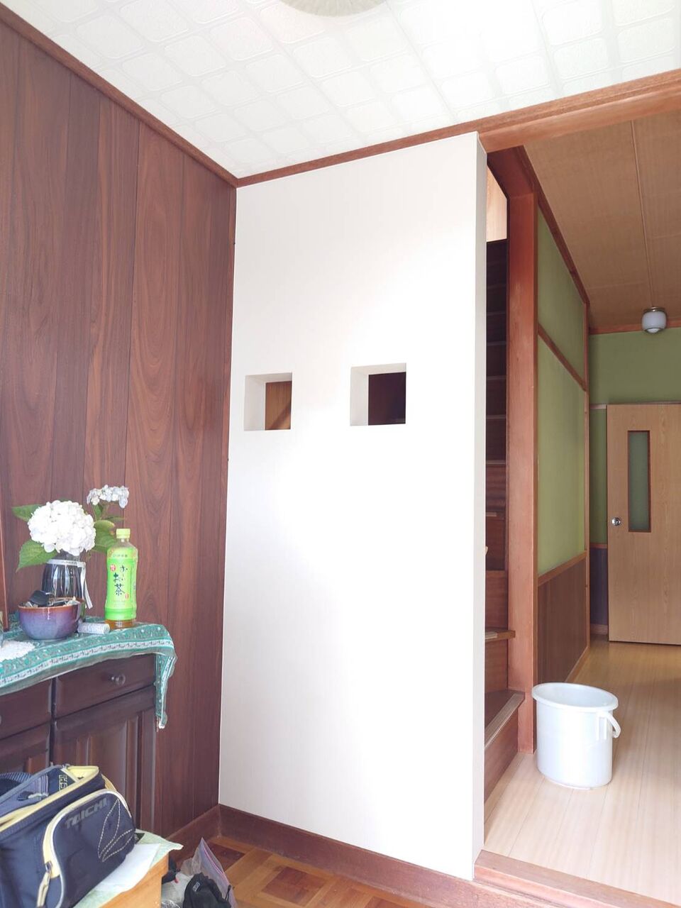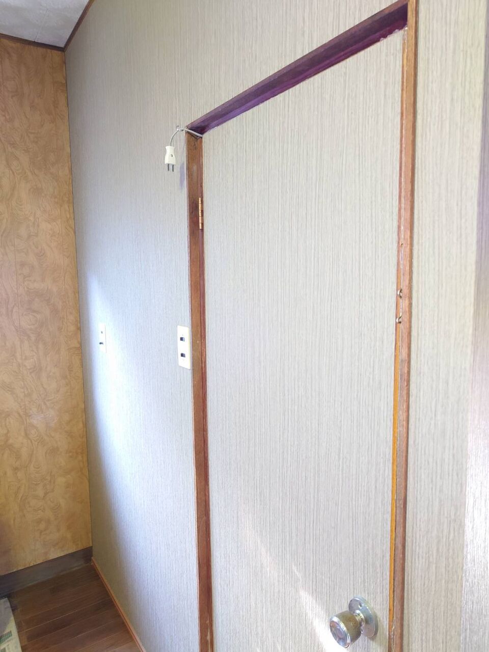 玄関側の壁の様子ですクロスを貼って明るくなりました