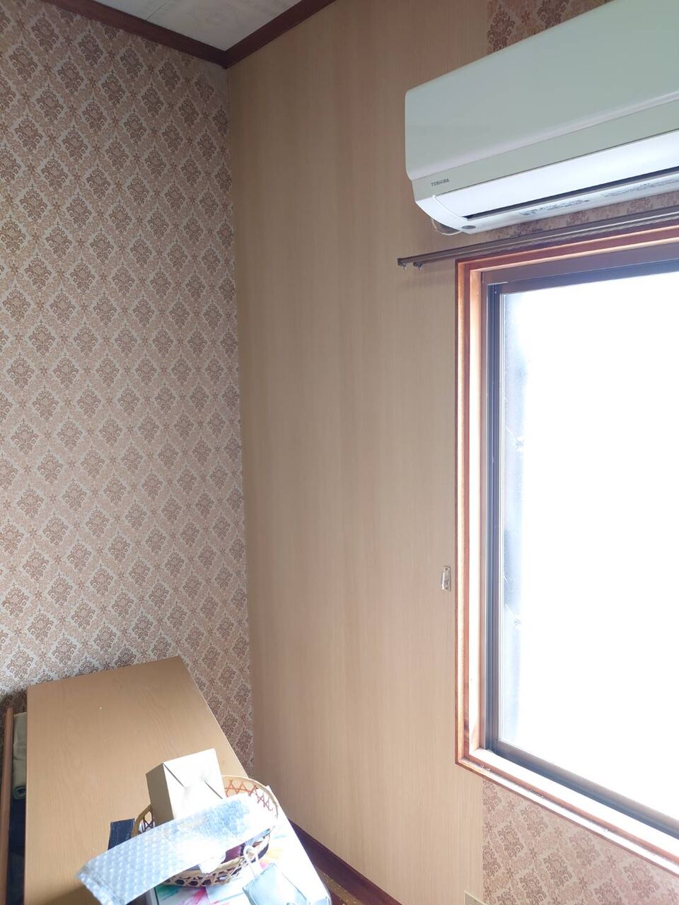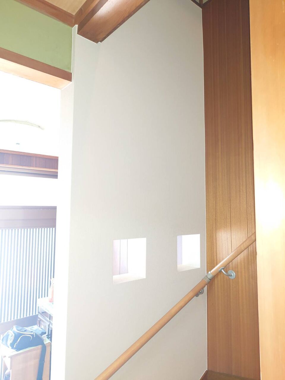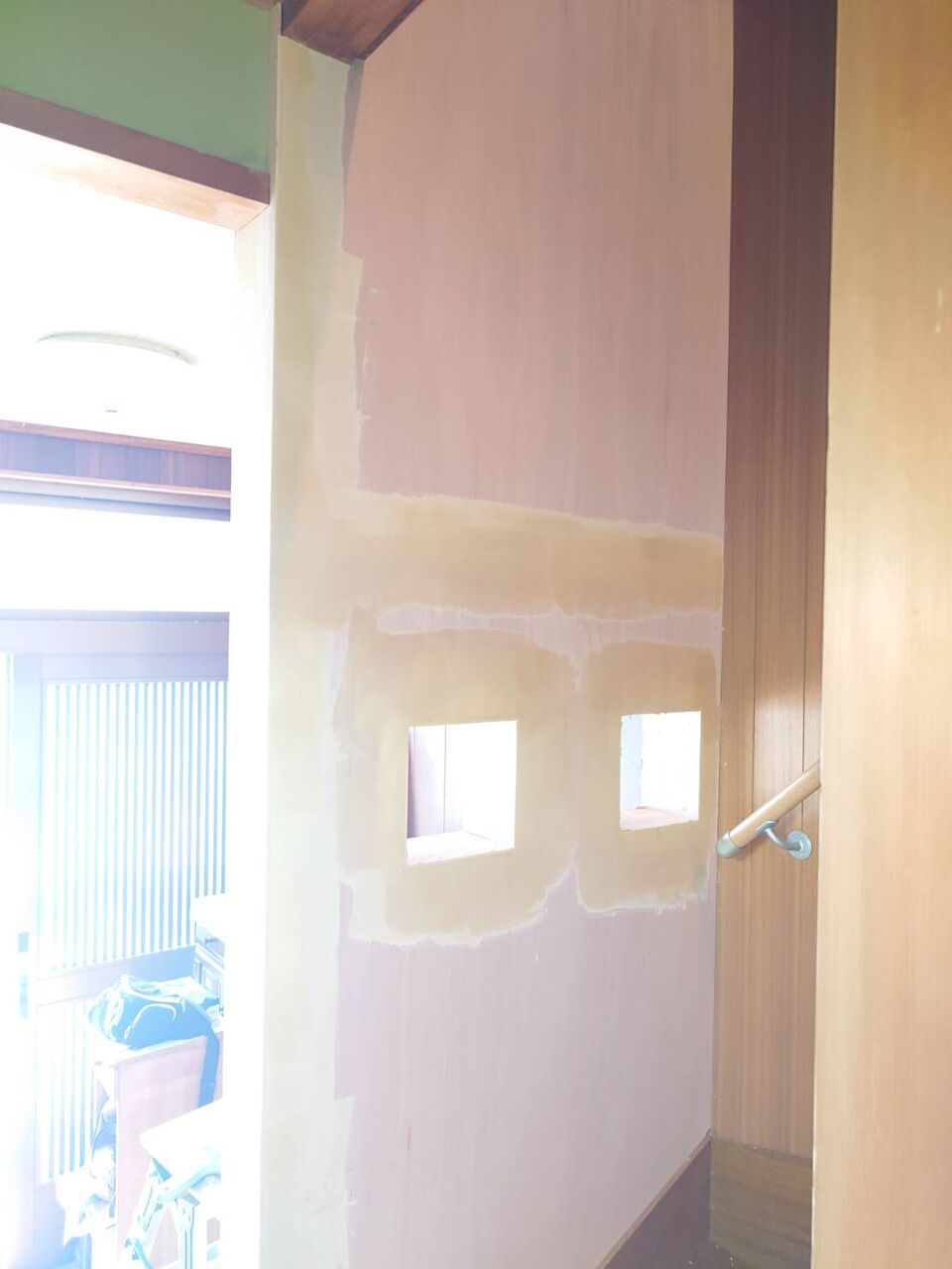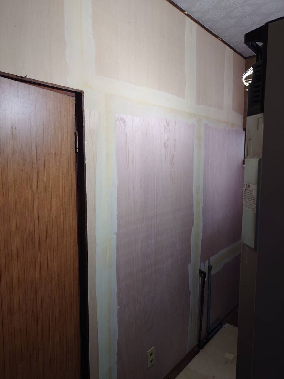 玄関側の壁の様子ですクロスを貼って明るくなりました