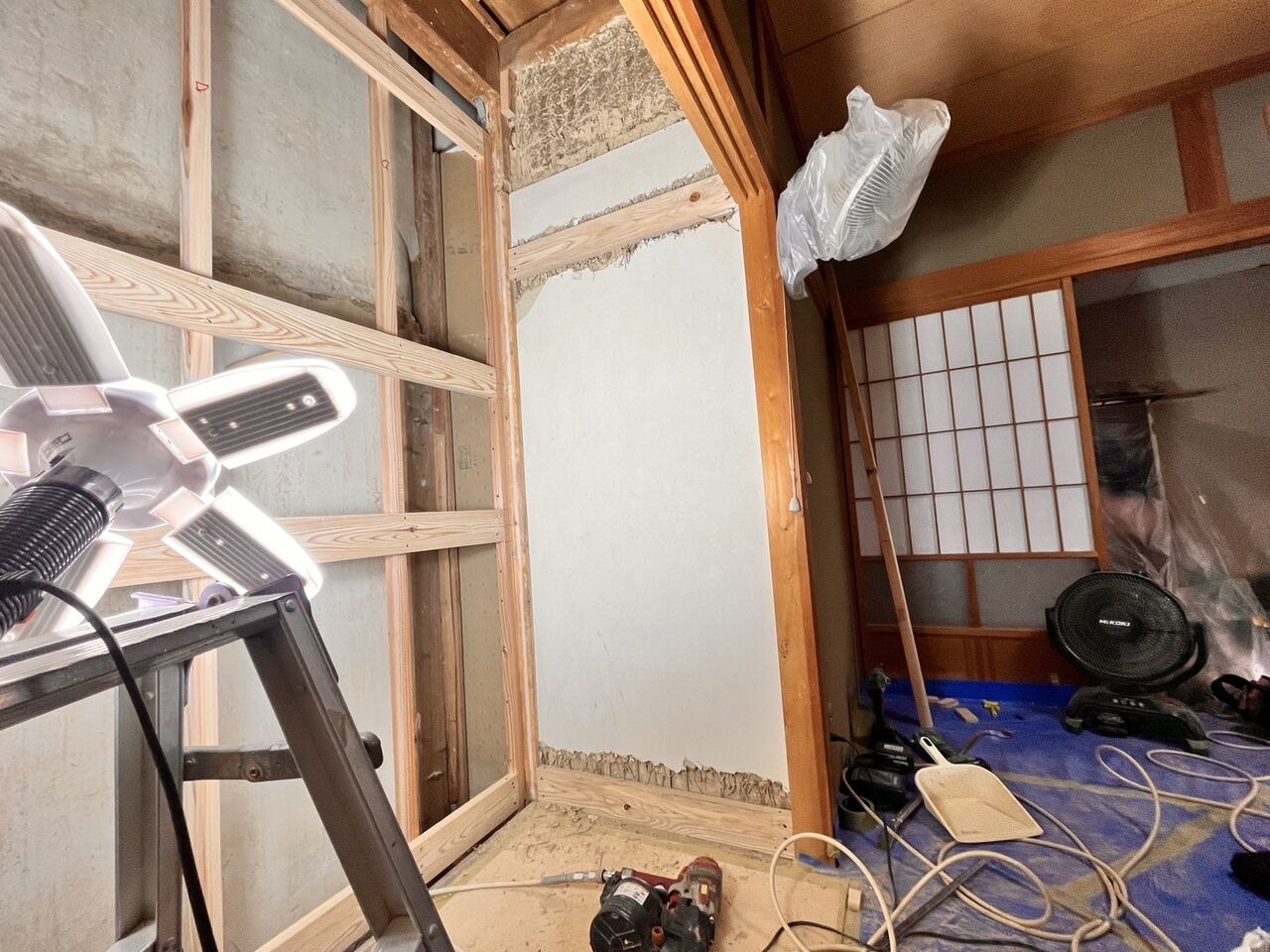 耐力壁補強下地と耐力壁補強が終わった所になります