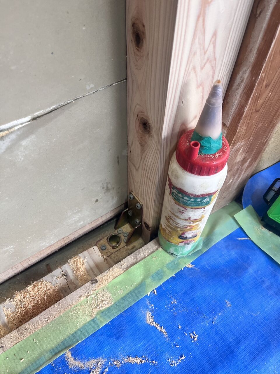 昨日解体していた押入内で耐力壁を作る作業です