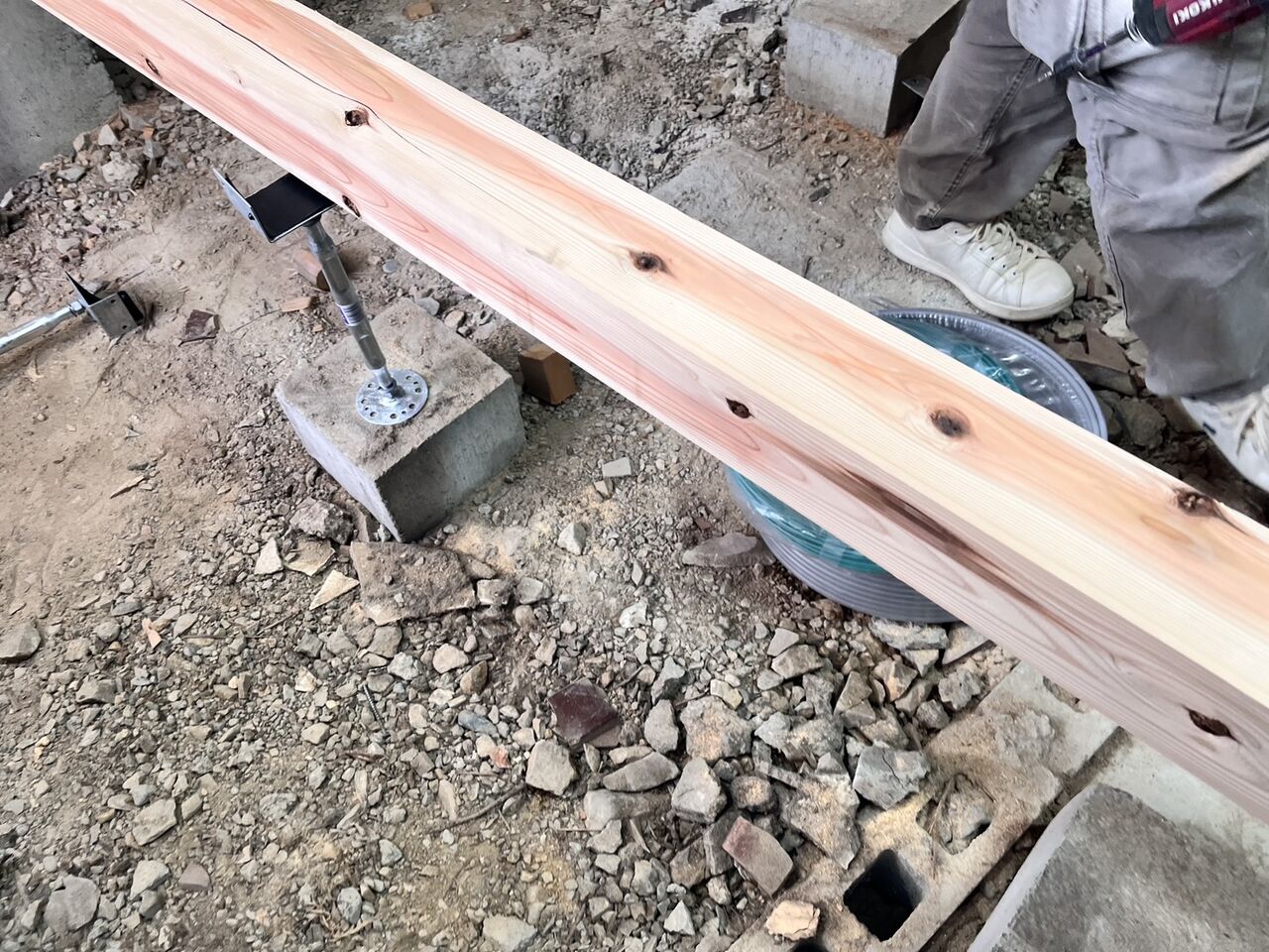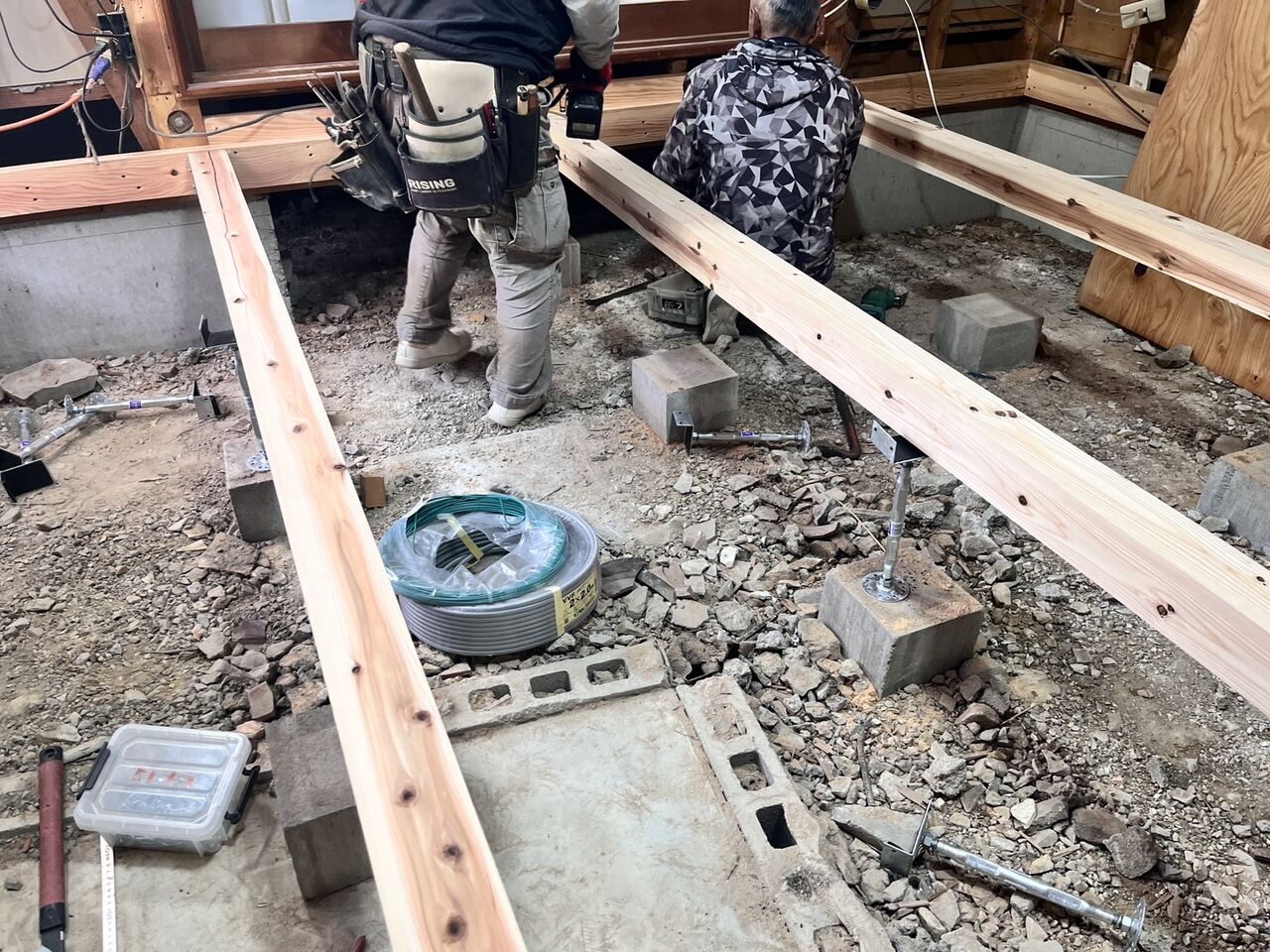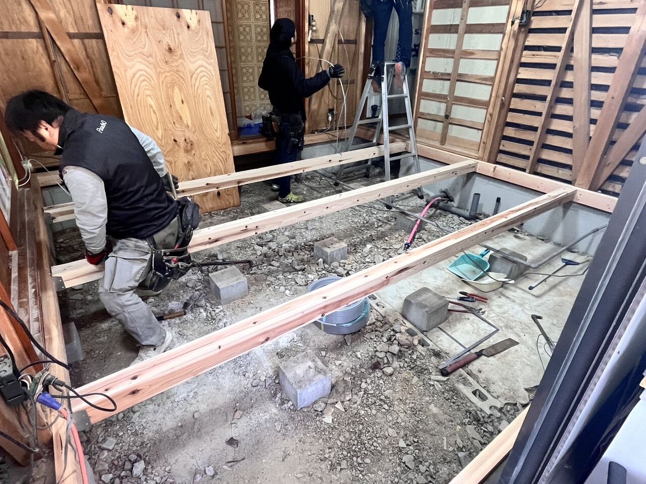 昨日床の解体工事を終えていたので、床下地からのスタートです