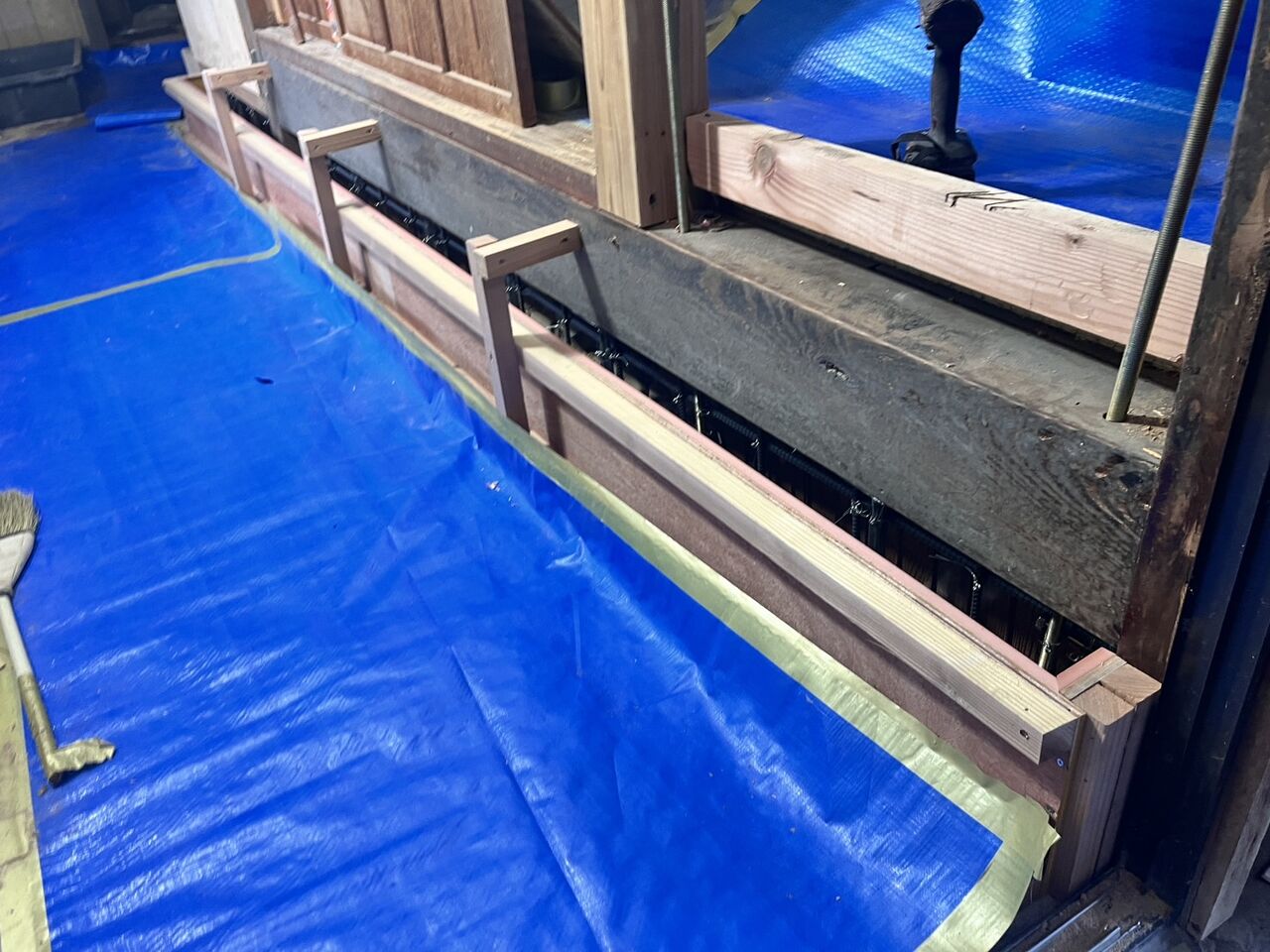 ここは増し打ち補強が出来なかった為、縁側の床を撤去して基礎補強を
