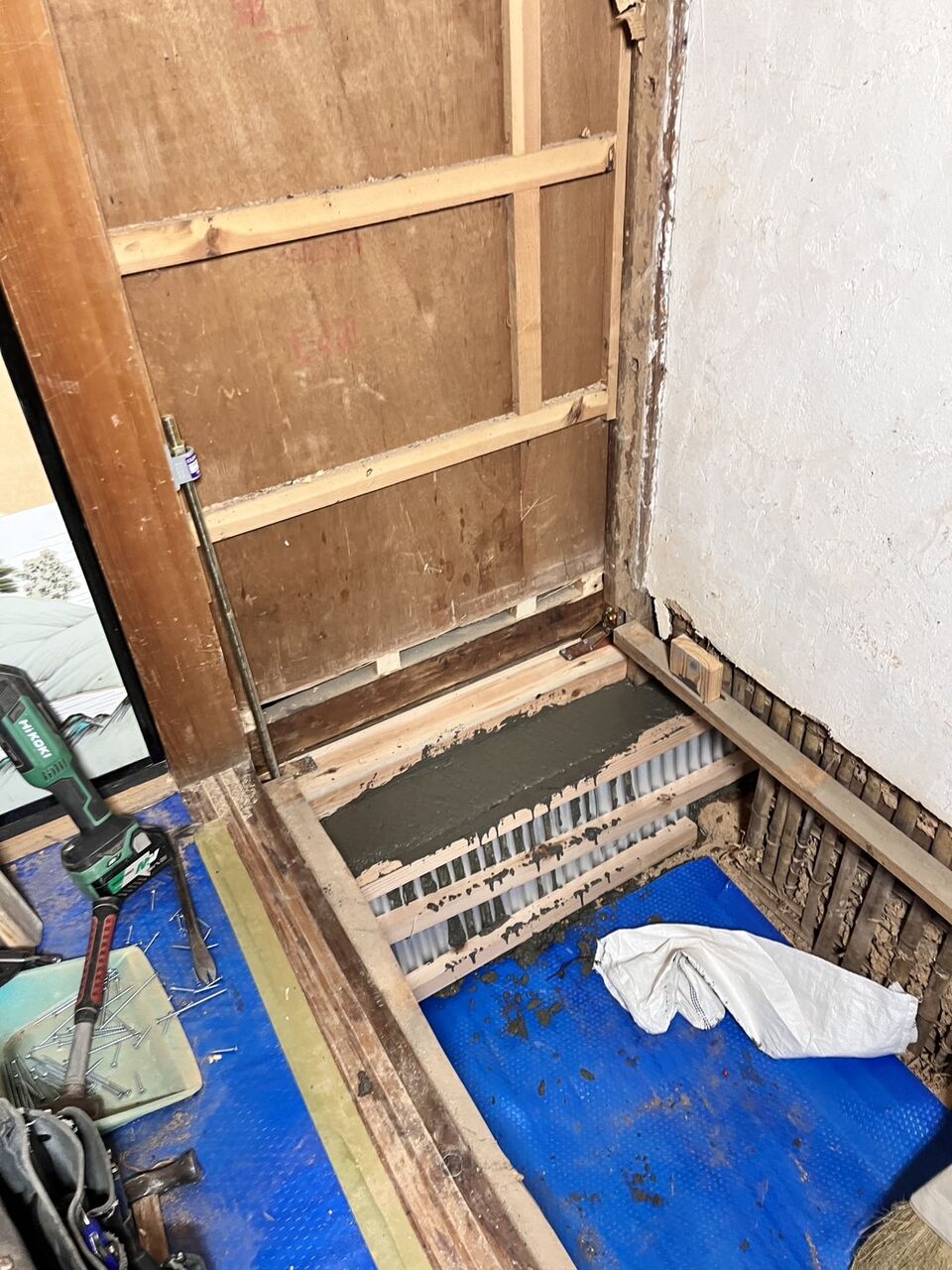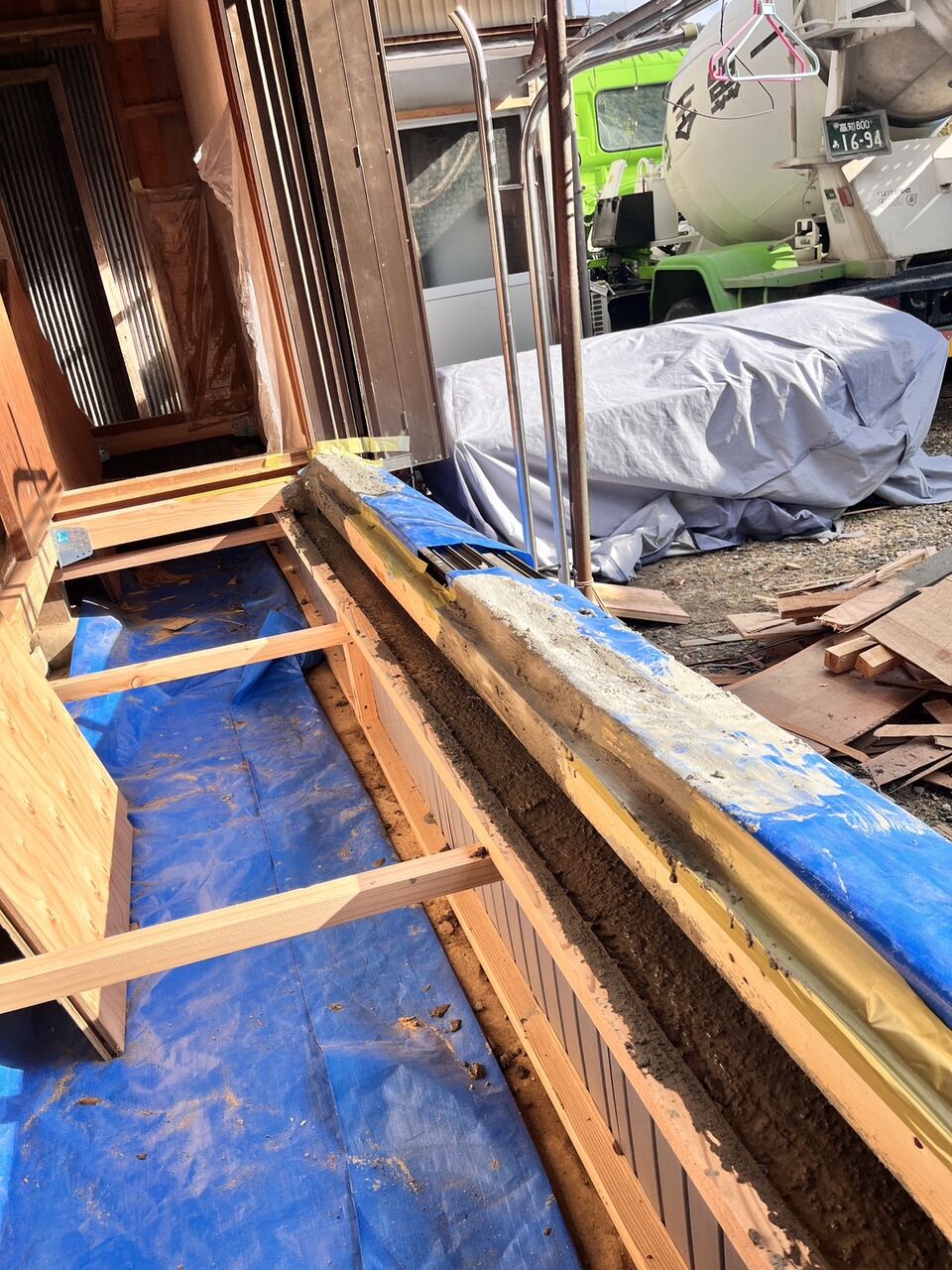 高岡郡中土佐町久礼で工事を行っているS様邸で、基礎補強工事の生コン