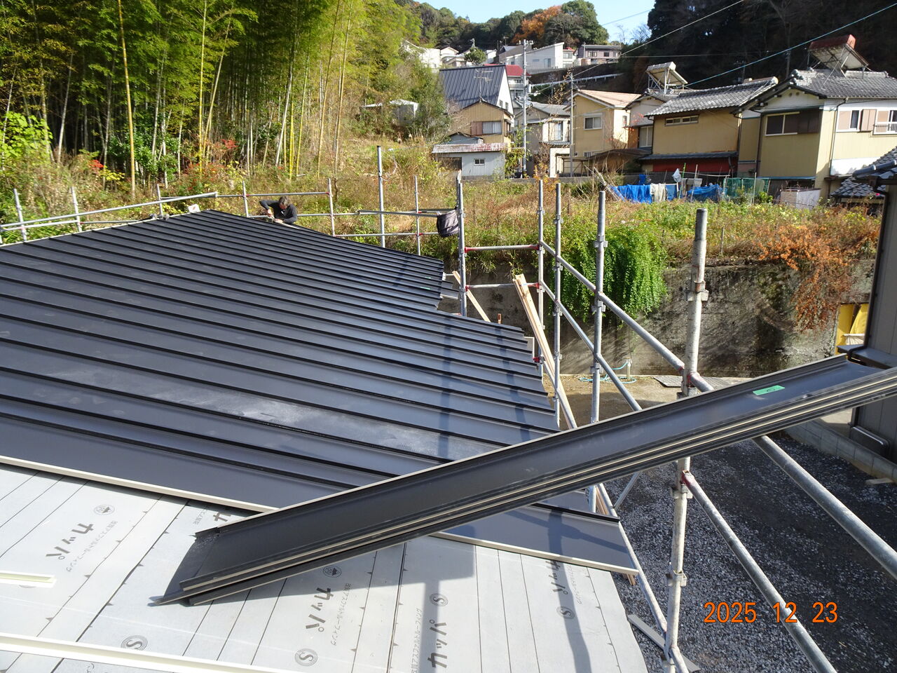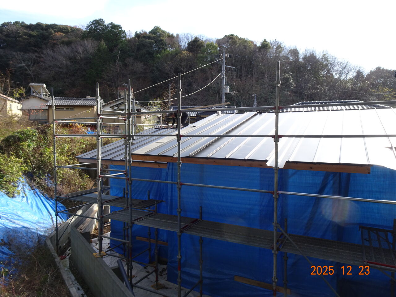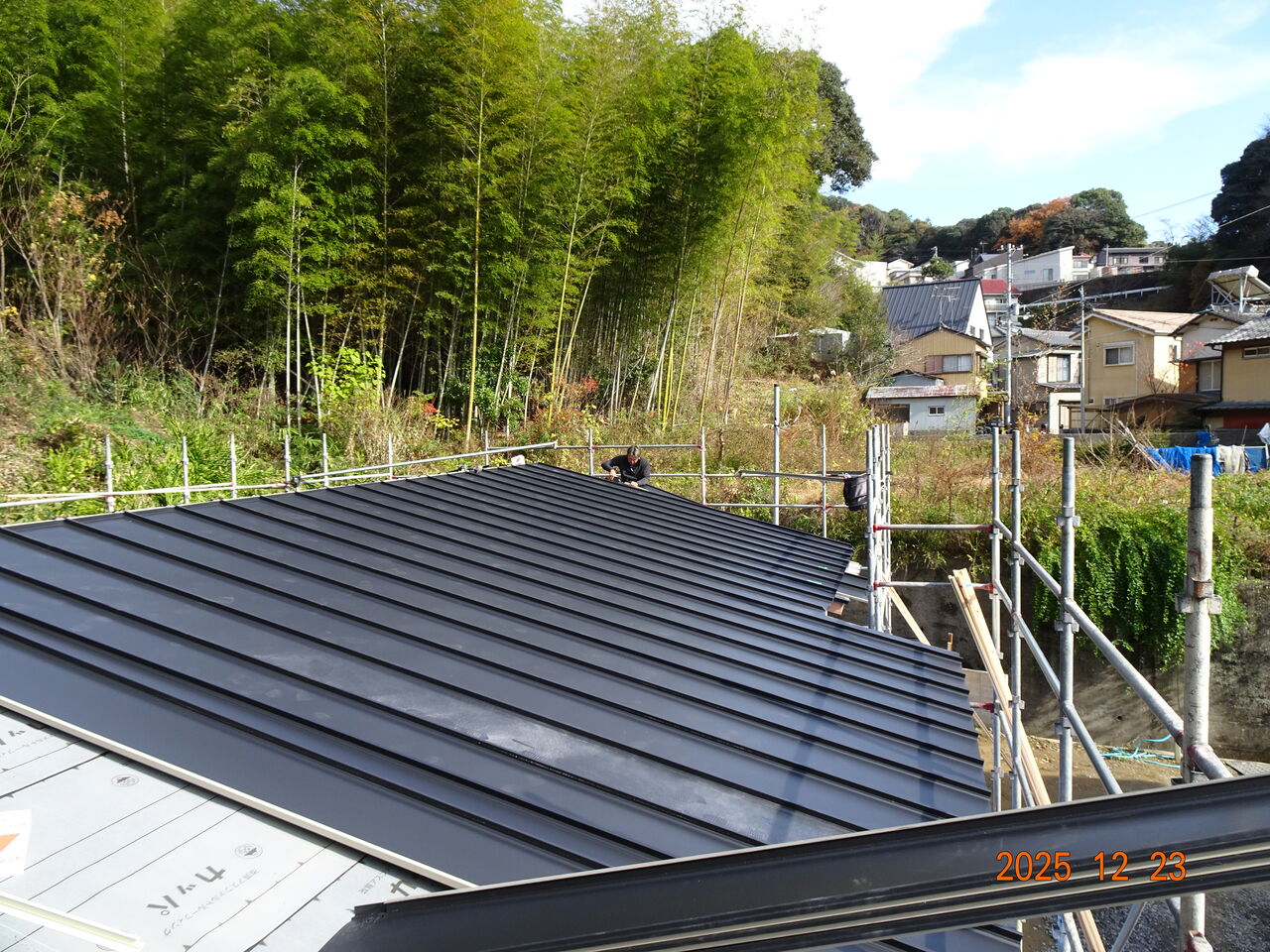 夕方になって又寒くなってきました朝も寒いですが夕方から先も寒いですね予定通り新築工事現場で屋根葺き工事を行いましたお昼の段階でこんな感じでした残ったら明日仕舞に来るという事でした先ほどlineが来て「屋根工事完了しました」との事でした若い職人さんが大勢いたので仕事早いですね明日は朝から設備工事を予定しています朝は全く陽ざしが無い現場なので、せめて気温が高いと有難いですがでは皆様、本日も一日お疲れ様でした 人気ブログランキング ↖バナーをポチッとお願いします