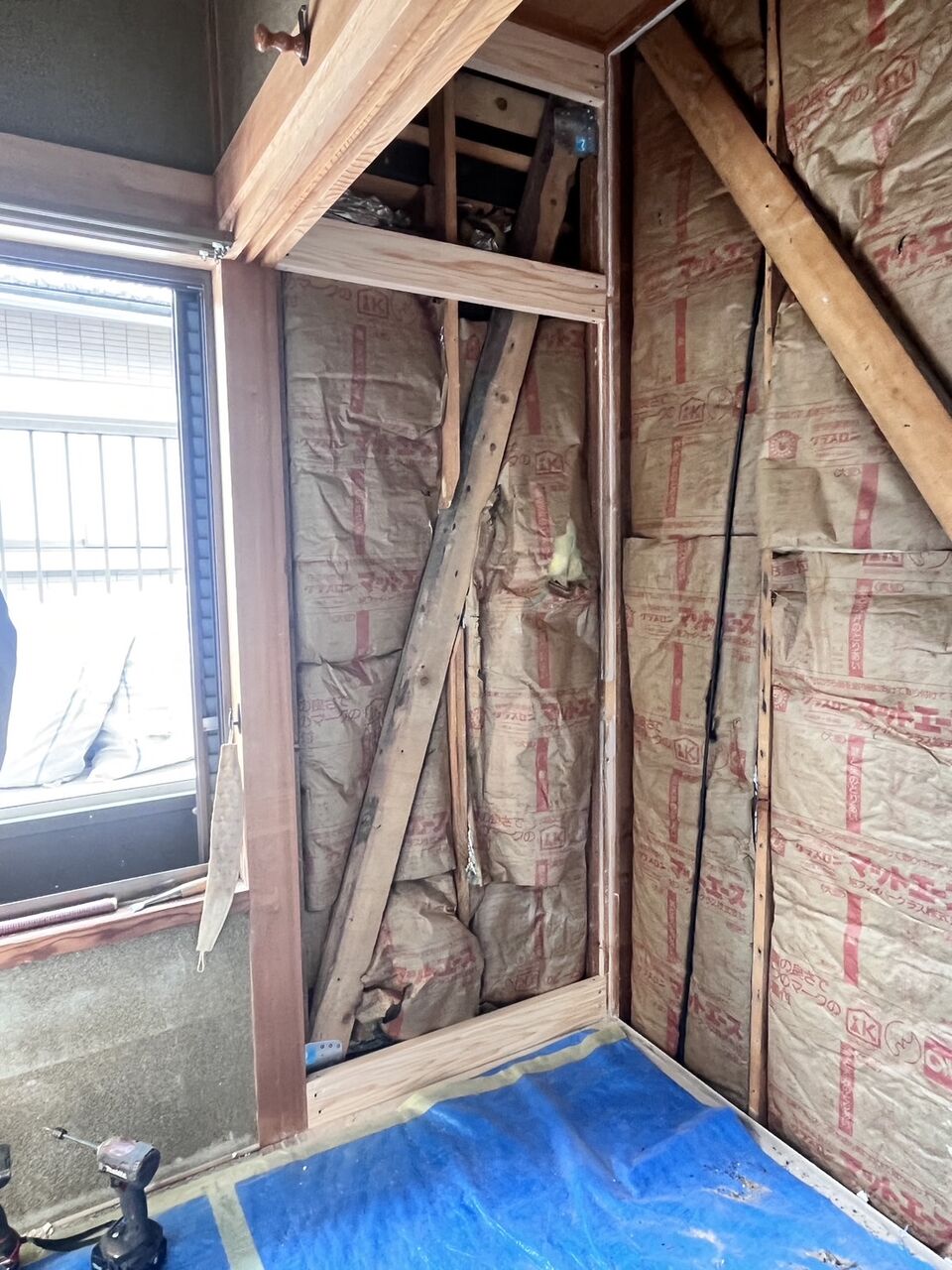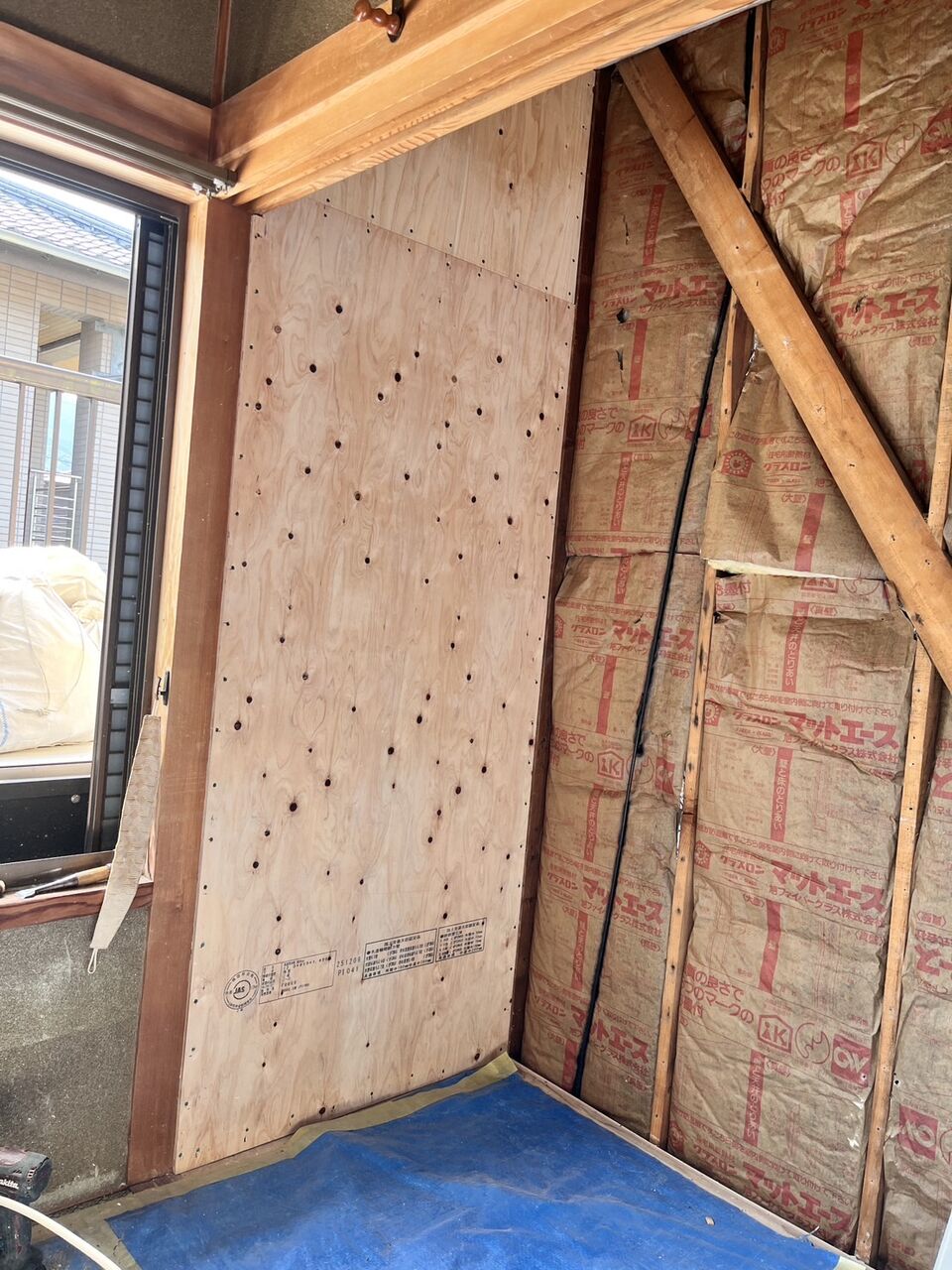 こちらは洋間の壁での耐力壁補強となります