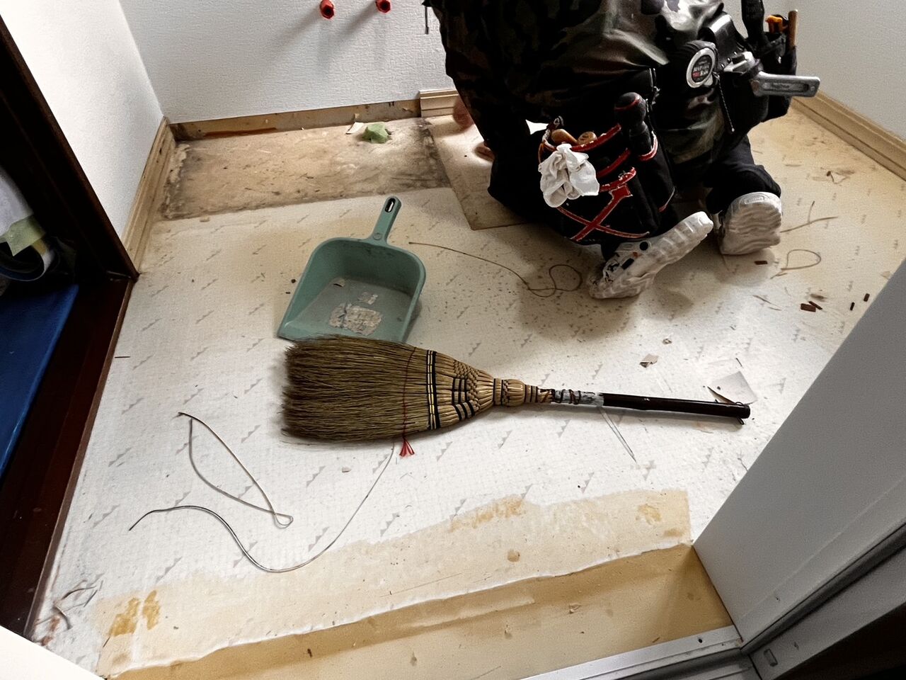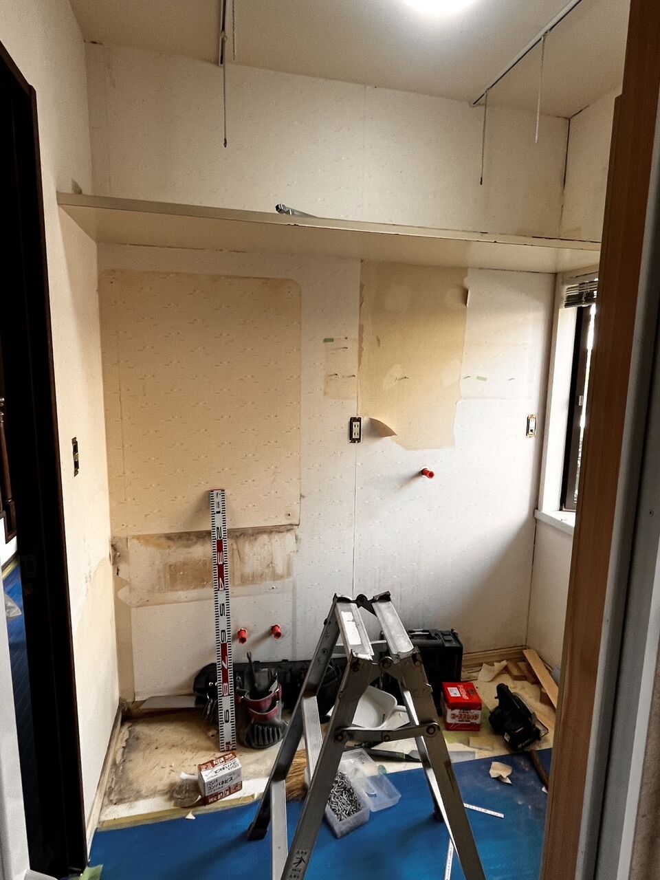 天井・壁クロス貼り替え工事の剥がし作業中です