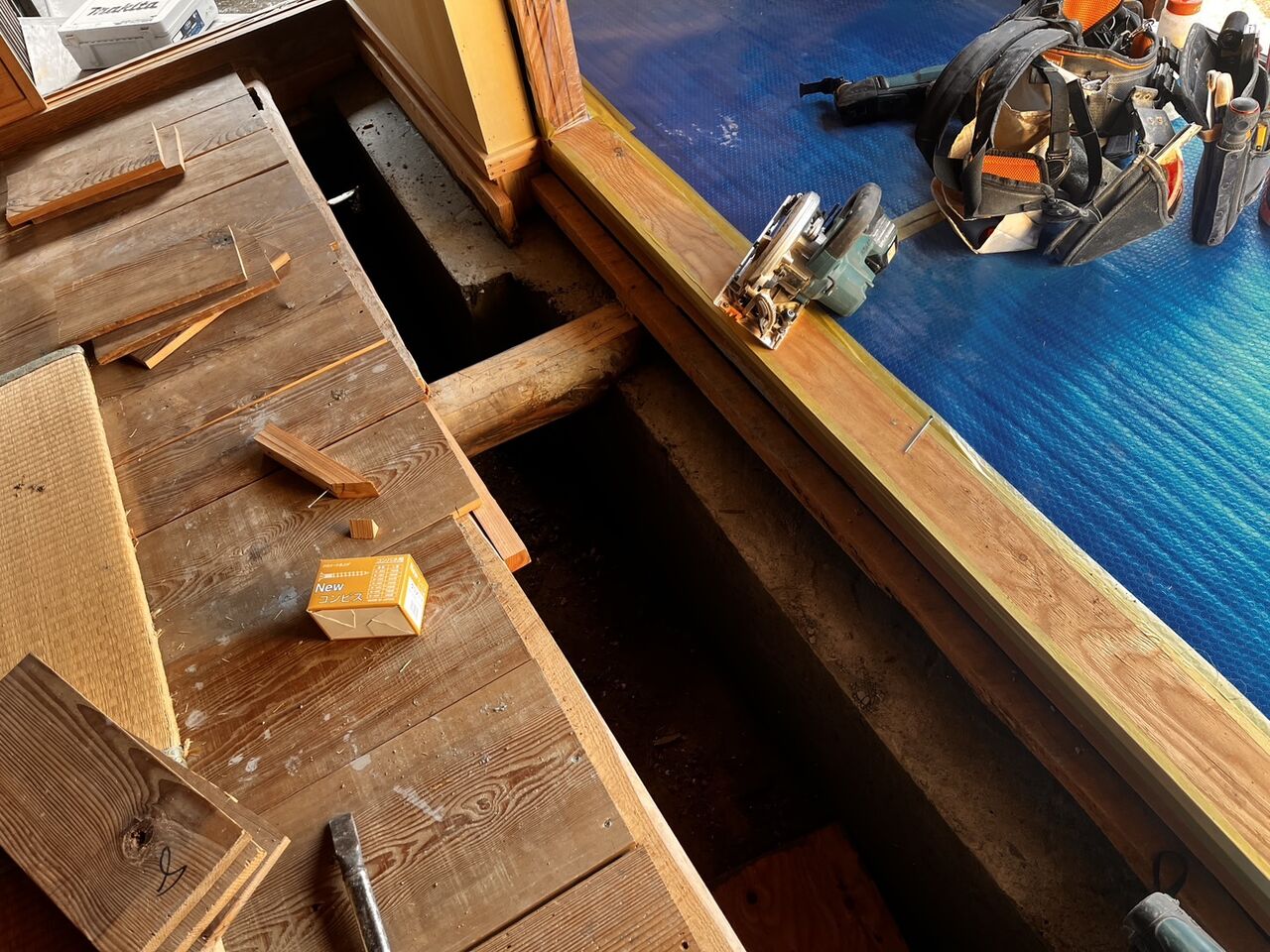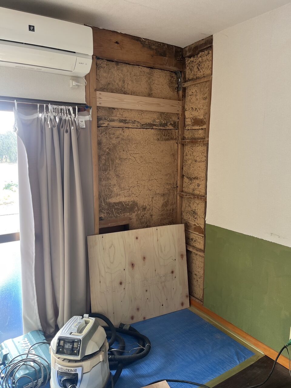 新しく柱を建てて、耐力壁を作って補強を行いました