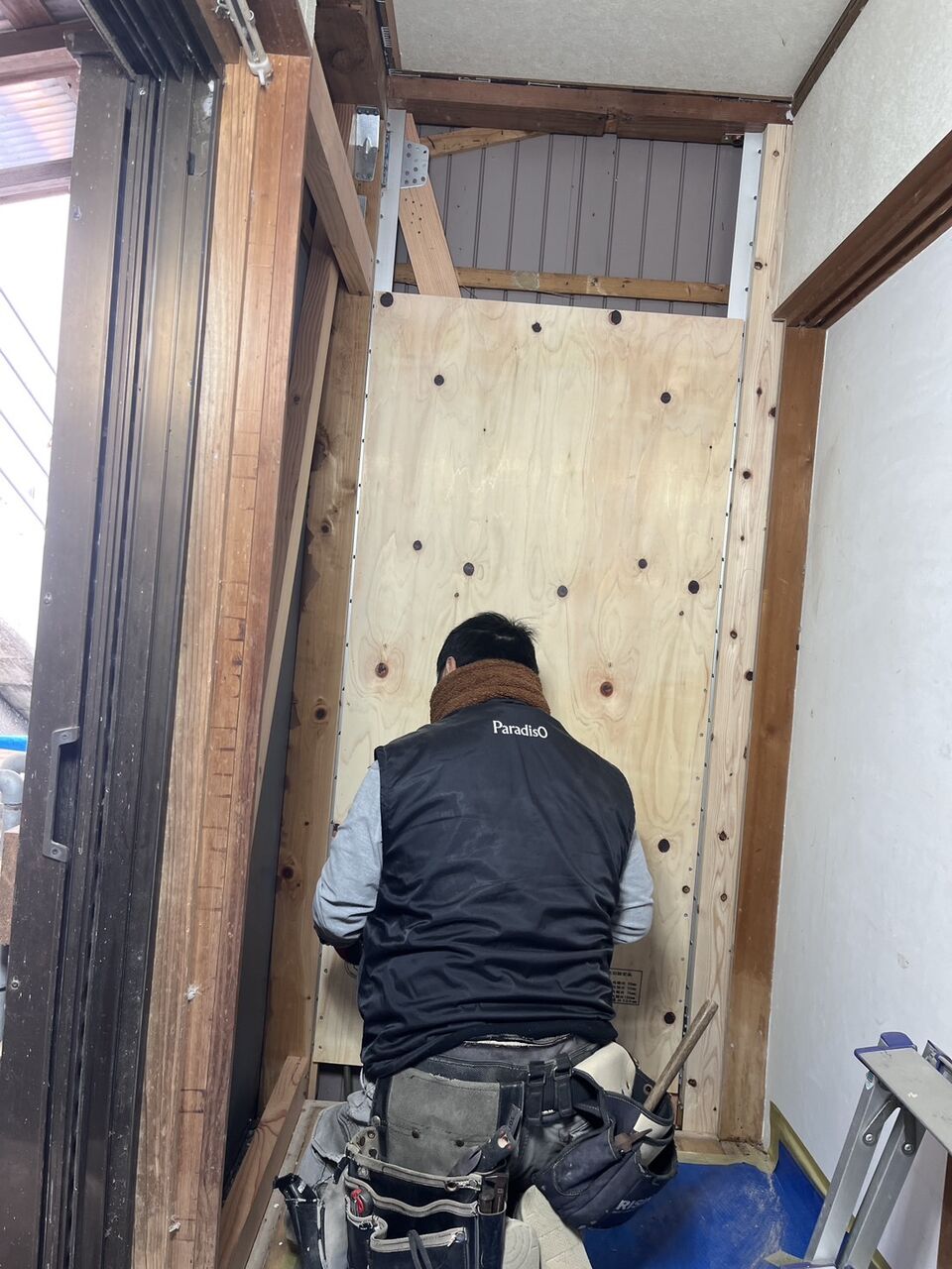 耐力壁を施工中の写真になります