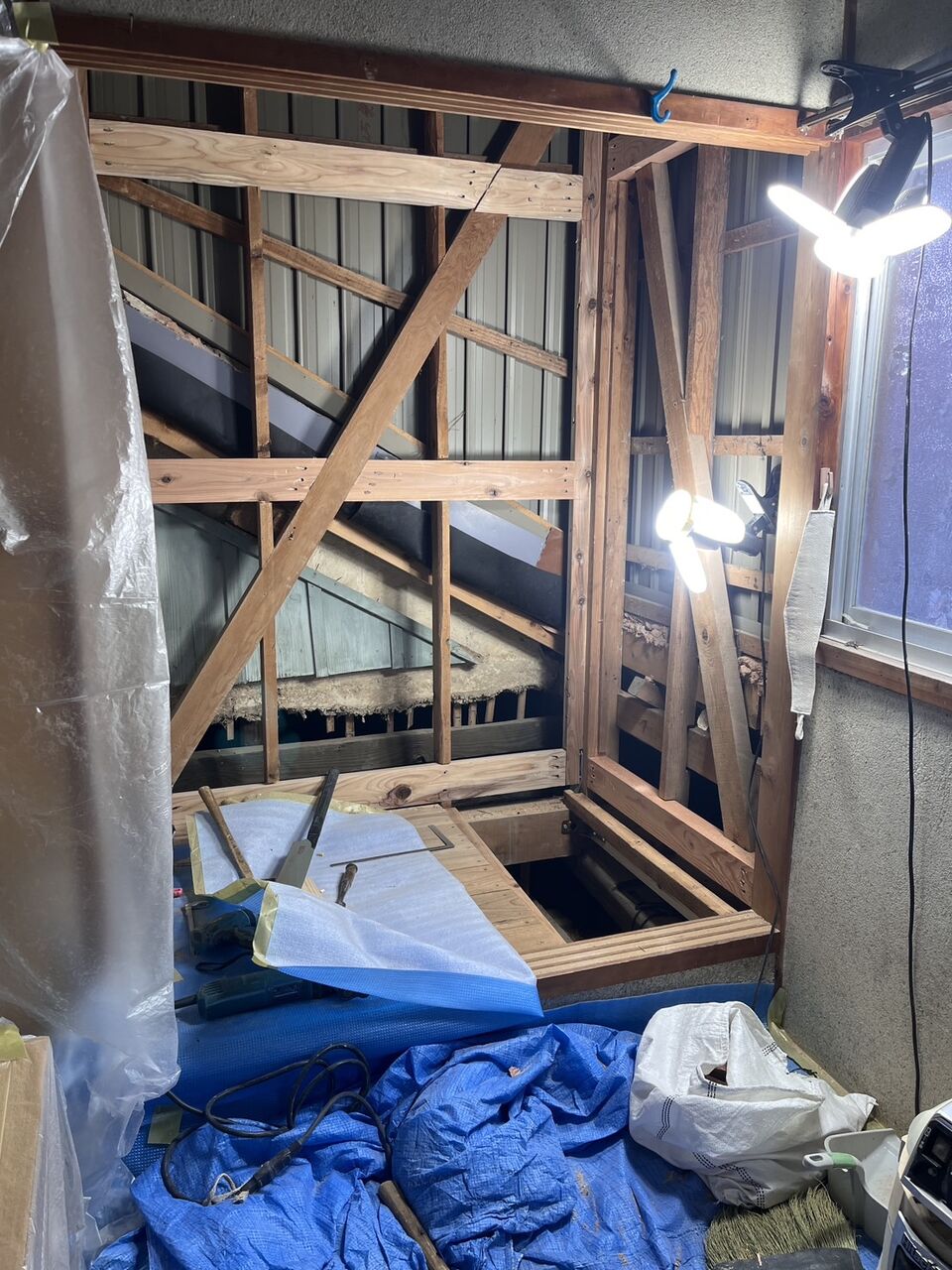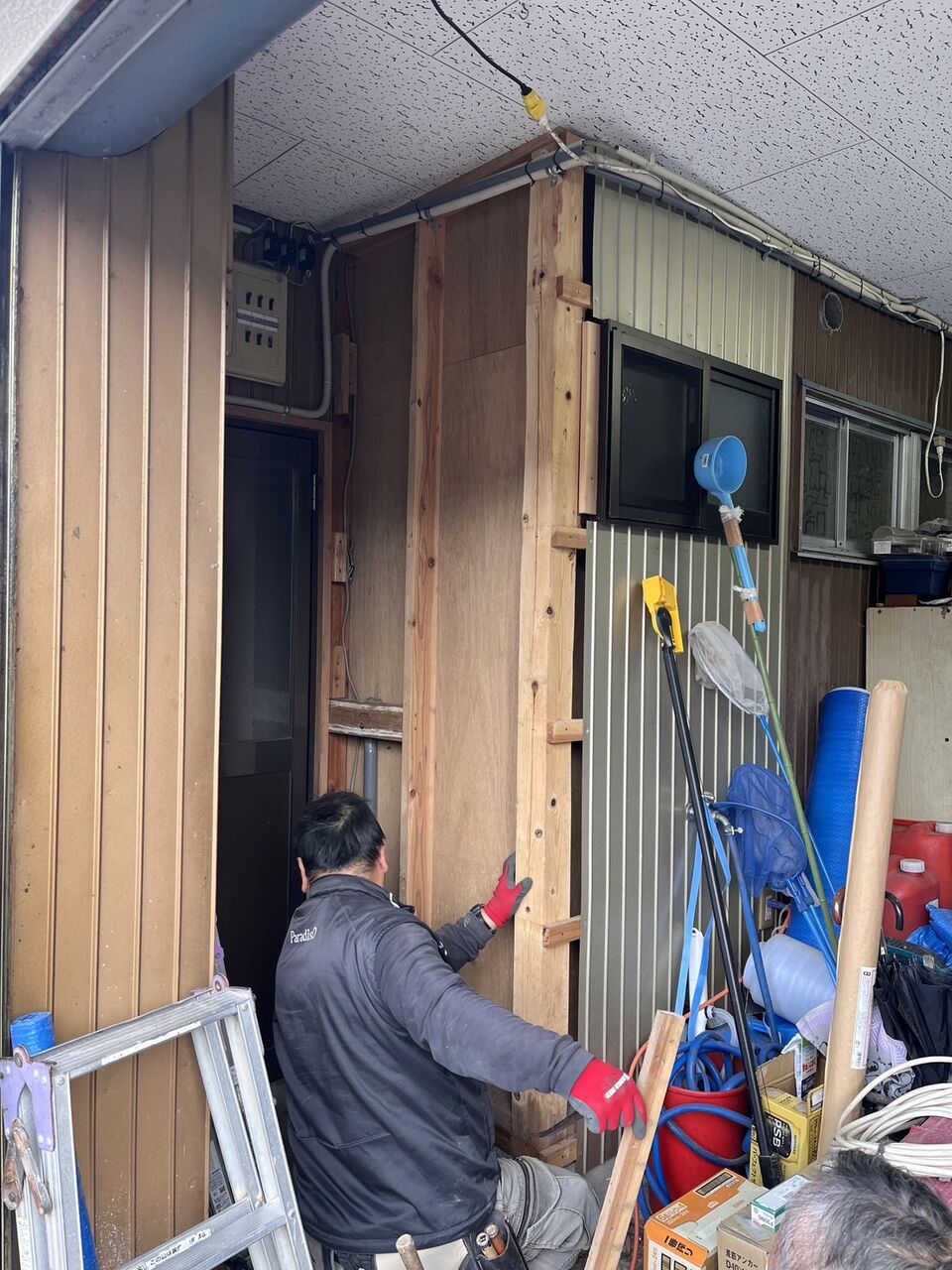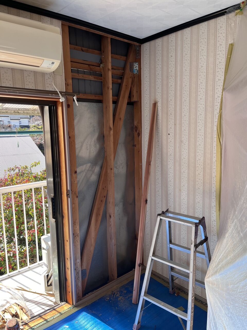 復旧のクロス用の下地が終って次の個所に移動した所です