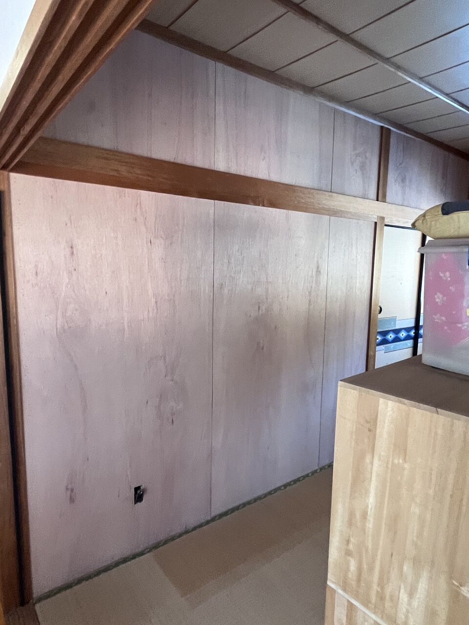 高知市北部のN様邸同様、Y様邸も和室の塗り壁にベニヤ板で下地を施し