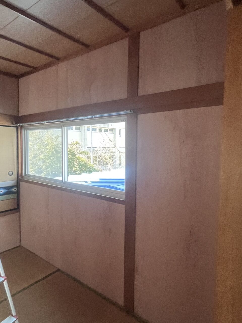 ランマ部分壁にベニヤ下地完成