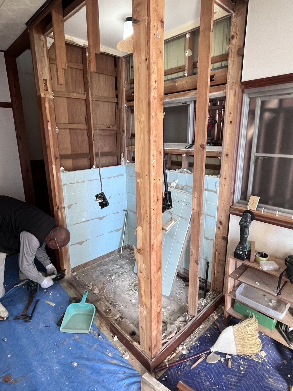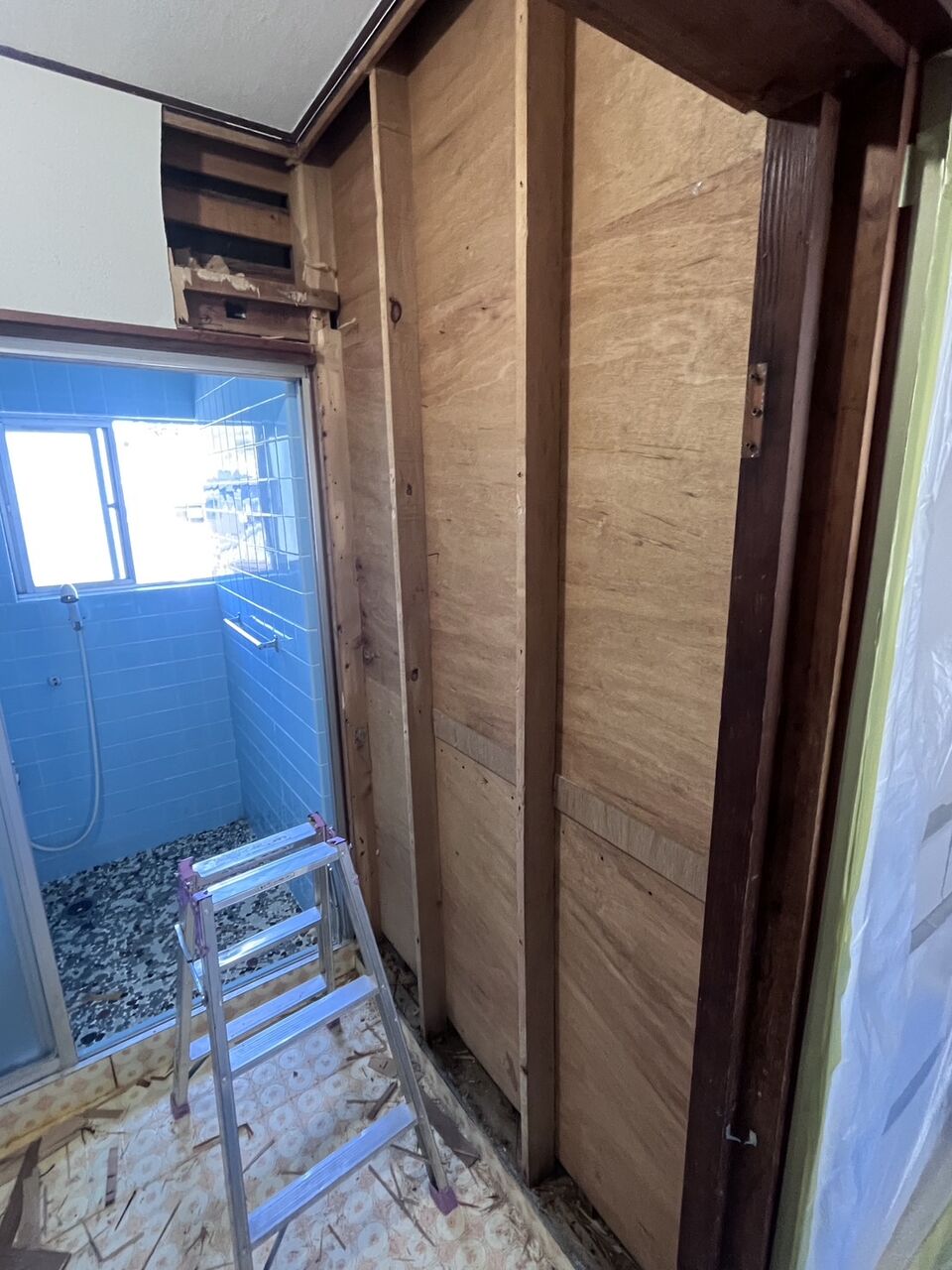 クロスの壁を撤去したら、何と昔のタイル壁が出てきました