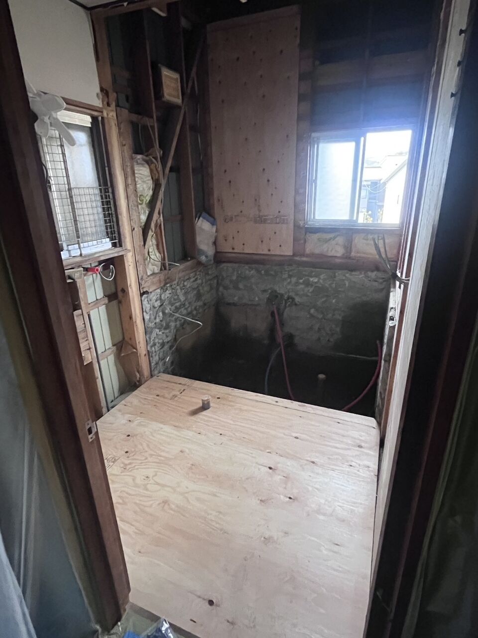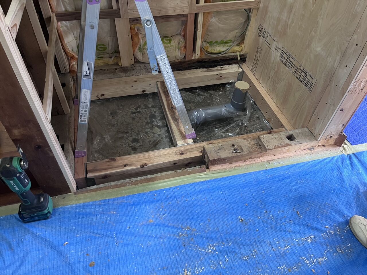 今回お風呂の改修工事を行うので、浴室内で補強工事を行いました