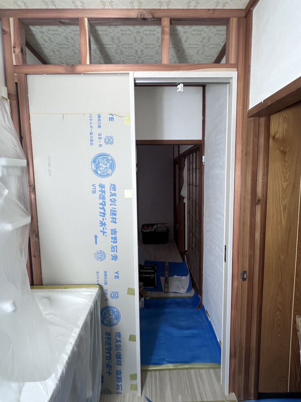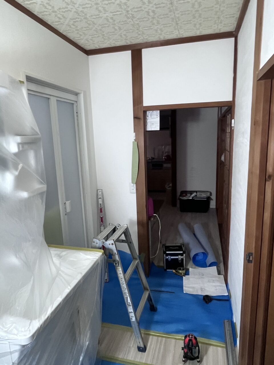 下地工事は本日完了したので、明日はクロス工事を予定しています