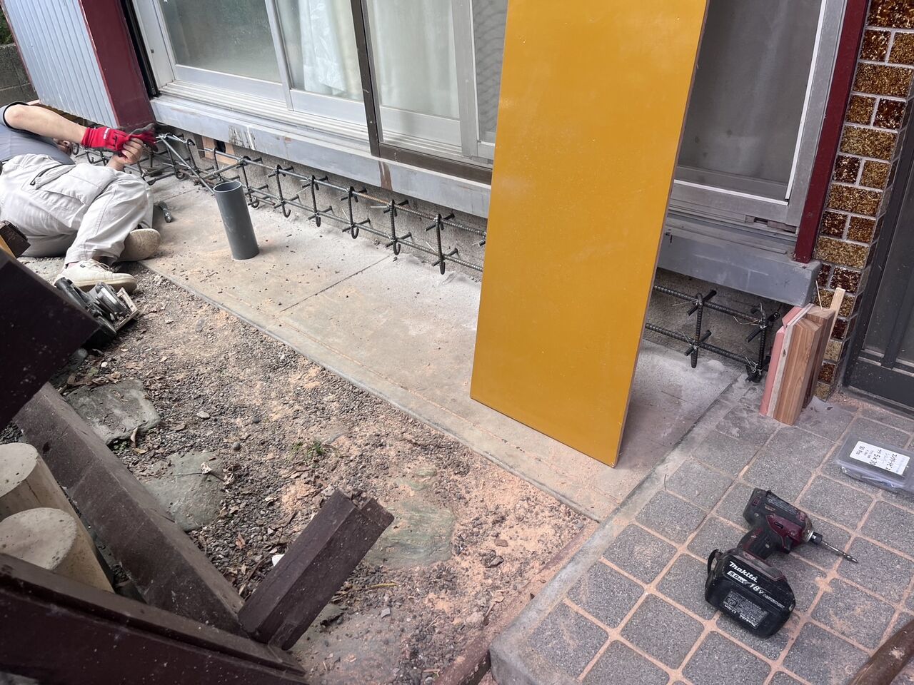 耐震補強工事で、基礎補強の工事の鉄筋と型枠設置も行いました